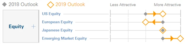 Akcie jsou pro analytiky z Goldman Sachs favoritem mezi investičními aktivy díky dobrému ocenění, a to i přes politické a makroekonomické nejistoty, jako jsou obchodní války, zvýšená volatilita a další. Na dluhopisovém trhu budou atraktivní zejména emitenti se silnou rozvahou, dobrou schopností splácet úroky a silou v oblasti cenotvorby (vzhledem k rostoucím nákladům a vysoké ceně práce). Pokles na rozvíjejících se trzích by měl být u konce a v roce 2019 by tento segment měl překonávat rozvinuté trhy díky lepšímu růstu a zajímavějšímu ocenění.
