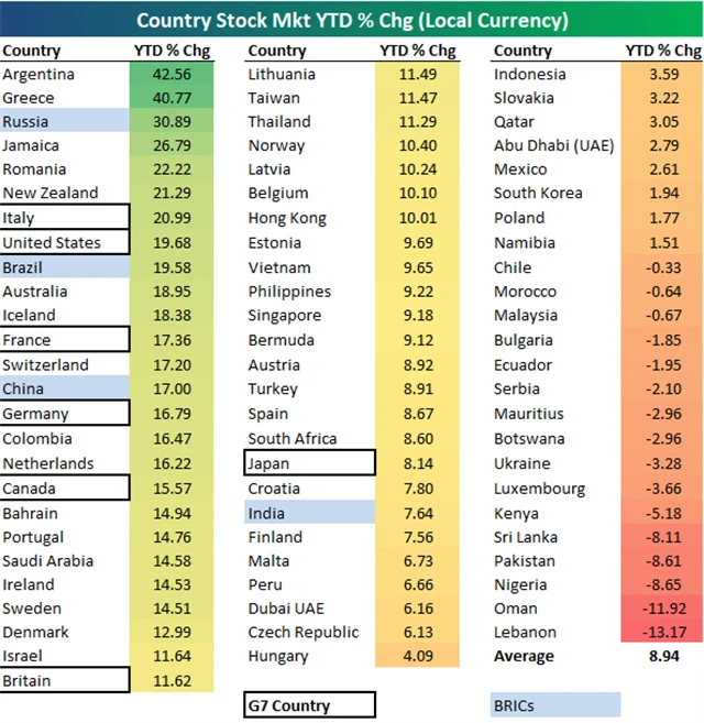 Vzhledem k velikosti trhu a globálnímu významu obchodovaných společností se nejčastěji řeší americké akcie. Ty letos jako celek již posílily zhruba o pětinu. Neméně zajímavé je ale to, že i další velké trhy jsou v plusu.