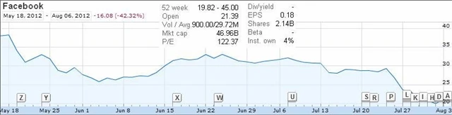 Není se tak proč divit, že po zveřejněných výsledcích klesaly akcie Facebooku na nová historická minima a za dva měsíce ztratily více než třetinu své upisovací hodnoty.
