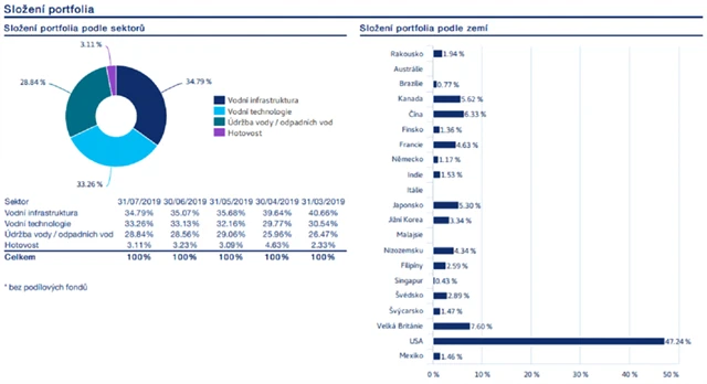 Fond je ideální pro investování ve střednědobém až dlouhodobém horizontu. Investuje do akciových společností působících ve vodním hospodářství nebo společností ze souvisejících oblastí, jako je udržitelný rozvoj. Fond klade důraz jak na kvalitu těchto firem, tak na vysoké potencionální výnosy. Správní poplatek je maximálně 1,75 % ročně a celkové TER činí 2,23 % ročně. V portfoliu najdeme 53 titulů.