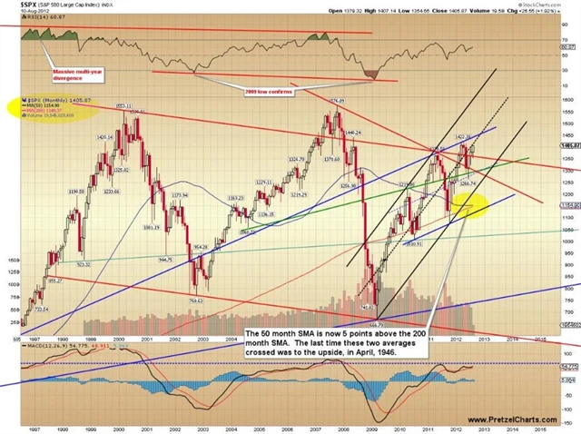 Index S&P 500 svým vývojem v posledních letech dal vzniknout situaci, které se na technickém grafu říká kříž smrti. Jde o to, že se k sobě výrazně přiblížily 50měsíční a 200měsíční klouzavý průměr. Pokud krátkodobější z nich prorazí ten dlouhodobý shora dolů, je to považováno za silný medvědí signál. Naposledy k podobnému "úkazu" došlo v dubnu 1946, je tedy namístě označit tuto blížící se událost jako signál, který dá technická analýza traderům jen jednou za život.
