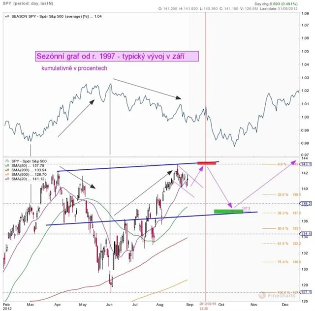 Září by mohlo být tím obdobím. Očekávám, že v půlce října by ceny akcií mohly být níže, než jsou dnes. Zda ještě posílí na nové lokální maximum v příštích dnech, je otázka, na kterou neexistuje jednoznačná odpověď. Mohou, ale nemusejí. Avšak cenové podzimní dno typicky nastává okolo 15. října, na což bych sázel i letos.