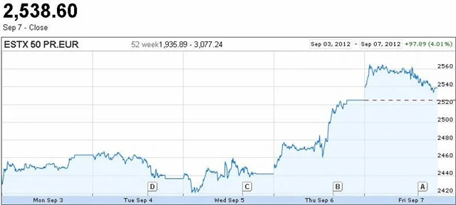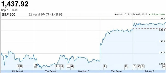 Vzkaz, který poslal minulý týden Mario Draghi trhům, je jasný. Množství peněz, které ECB může vytisknout, je neomezené. A trhy na to patřičně zareagovaly. Ačkoli je září typicky špatný měsíc, současné dění naznačuje, že poklesy vůbec nemusejí přijít. Takže akcie a komodity nahoru, americký dolar dolů.