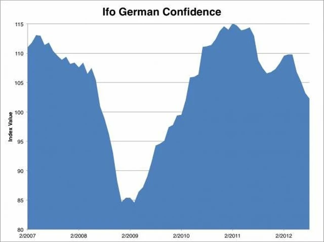 Výhled německé ekonomiky se zhoršuje společně s postupem krize v eurozóně. Němečtí exportéři jsou pro evropské dovozce drazí a začínají to jasně cítit. Index nákupních manažerů je hluboko pod 50 body, index Ifo klesá několik měsíců v řadě.