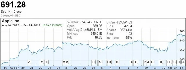 Akcie Applu se v pátek dostaly na nové historické maximum. Hranice 700 USD za akcii je na dohled.