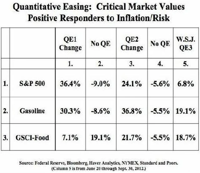 Fed ve snaze zachránit trhy a ekonomiku spustil postupně kvantitativní uvolňování č. 1, č. 2, operaci Twist a v září kvantitativní uvolňování č. 3. De facto tím "tiskne peníze". Dopady uvolněné měnové politiky je potřeba vnímat minimálně ve dvou rovinách.