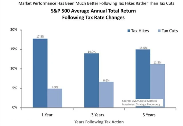Trh navíc naopak zaostával za dlouholetým průměrem právě v letech, kdy byly daně snižovány. "Ani to ovšem není důsledek daní samotných, ale fáze ekonomického cyklu, v níž ke snižování daní docházelo," uzavírá Belski. Vyšších daní se proto podle něj investoři bát nemusejí.