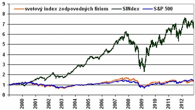 Kdyby investor vložil na začátku roku 1999 do indexu hříchu SINdex 1 USD a reinvestoval by dividendy, tak by v současnosti měl na účtu 7,27 USD. Pro srovnání, stejná investice do amerického akciového indexu S&P 500 by se zhodnotila na 1,48 USD. Investice do globálních odpovědných firem podle indexu Dow Jones Sustainability Index World by vzrostla na 1,38 USD.
