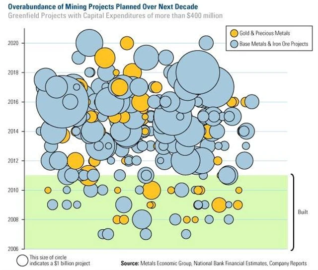V Tocqueville Gold spočítali, že desítka největších těžařských firem za posledních pět let téměř ztrojnásobila své celkové kapitálové výdaje (ze 7,8 miliardy USD v roce 2007 na téměř 22 miliard USD v současnosti).
