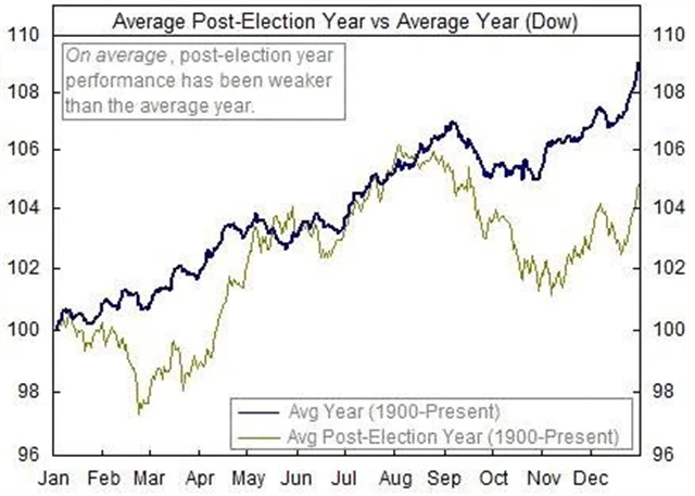 Rok 2013 bude ve Spojených státech povolební. A od roku 1900 mají americké akcie tendenci v povolebních letech zaostávat za průměrem všech let. Trh klesá v průměru nejvíce v lednu a únoru, během roku pak od srpna do začátku listopadu. Slušnou výkonnost naopak akcie předvádějí od konce března do května.