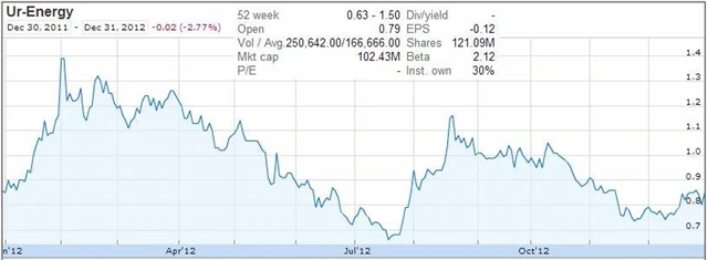 UR-Energy je americká "junior" těžební společnost, která se chystá v roce 2013 spustit těžbu uranu v prvním ze svých nalezišť v USA (Lost Creek Wyoming – projektovaná výtěžnost 7,38 milionu liber U3O8, hodnota zhruba 283 milionů USD). UR-Energy vlastní celkem 13 nalezišť uranu v USA a 3 v Kanadě.