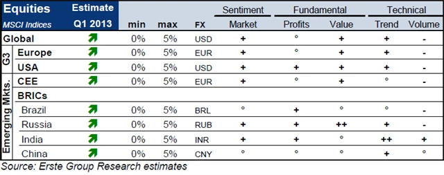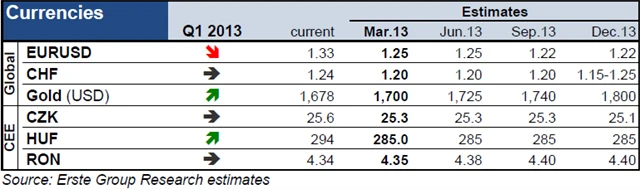 Mírný akciový optimismus, posílení amerického dolaru i švýcarského franku vůči euru a stabilní situace na trhu s dluhopisy - takový je výhled analytiků z Erste Group na první kvartál 2013. Žádný armagedon nečekejte.