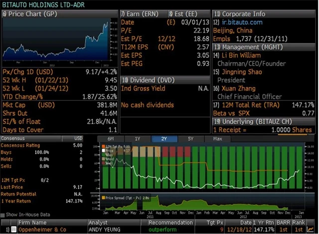 Bitauto z této chyby může benefitovat. Firma provozuje webové stránky, které umožňují Číňanům zorientovat se v cenách aut. Číňané nakupují auta jako o závod, takže transparentnost na trhu s auty je přesně to, co na webu hledají. Firma má za sebou (na rozdíl od některých jiných internetových společností) reálný byznys a za posledních let se jí daří navyšovat tržby (o 60 % meziročně v posledních 8 kvartálech).