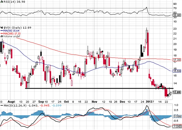 Index volatility VIX poslední tři dny mírně rostl. Dokonce ani v pátek, při zavírací ceně S&P 500 nad 1 500, si malé zvýšení neodpustil. Z teritoria pod hodnotou 13 se ale nedostal a zůstává v klesajícím trendu.