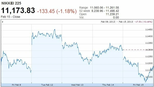 Nová japonská vláda se netají tím, že chce od centrální banky aktivnější přístup k řešení slábnoucí ekonomiky a deflačního vývoje. Japonci pracují na dalším uvolnění už tak dost volné měnové politiky, což se v poslední době projevuje poměrně rychlým poklesem kurzu eura. Investoři se proto před schůzkou G20 zbavovali jak akcií exportérů, tak například akcií bank a dalších finančních institucí.