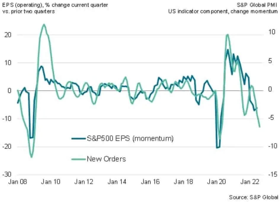 A téma zpomalující ziskovosti není jen americké, ale globální. Vysoké náklady obecně, silný dolar nebo (zejména) v Evropě problémy s vysokými cenami energií vyvolávají tlak na zisky. Ceny akcií z maxim klesaly již dříve, nyní se obě křivky (cen akcií a ziskovosti) v grafu opět setkaly. Kam dále?