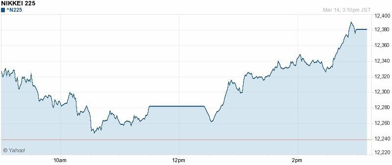 Hlavní index tokijské burzy Nikkei 225 v závěru stoupl o 1,2 % na 12 381,19 bodu. Od poloviny listopadu získal Nikkei přes 40 %. Podle analytiků byl úterní a středeční pokles technickou korekcí a vybíráním zisků z dosavadního růstu.