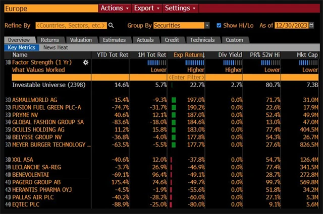 Ze všech evropských firem věří analytici nejvíce švýcarské sociální platformě A Small World, jež dává dohromady zejména finančně dobře situované jedince, kteří holdují cestování a jdou s dobou, co se "lajfstajlu" týče. Její akcie by měly v roce 2024 přidat rovněž takřka 200 procent. Zhodnocení 190 procent by mohla nabídnout irská společnost Fusion Fuel Green, která rozvíjí technologie založené na zeleném vodíku.