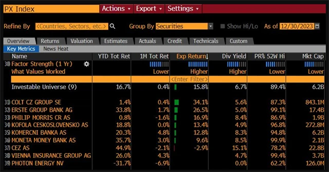 Které akcie se v roce 2024 dočkají největšího zhodnocení? Podle porovnání nynější ceny a cílové ceny za 12 měsíců v konsensu mezinárodních analytiků, jak jej zachycuje agentura Bloomberg, bychom se v letošním roce mohly dočkat největšího zhodnocení u následujících společností.