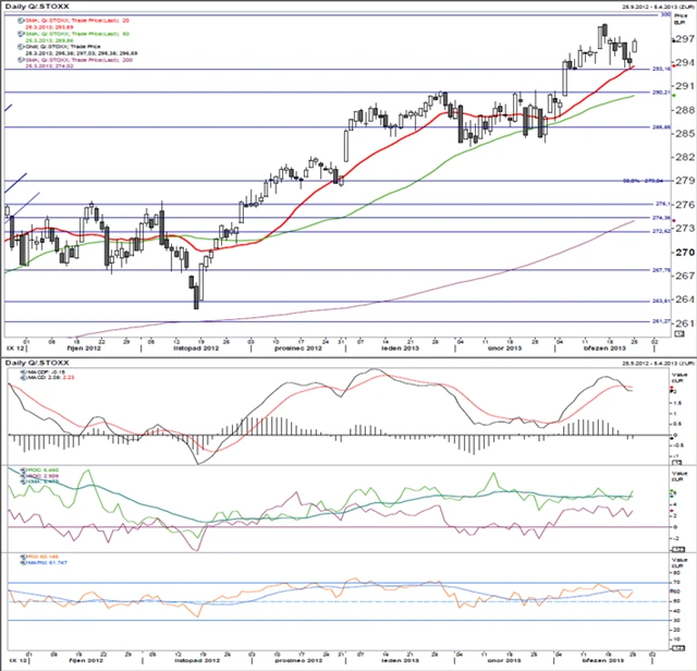 Technická analýza indexů S&P 500, DAX a Stoxx 600 na základě úrovní z pondělí 25. března.