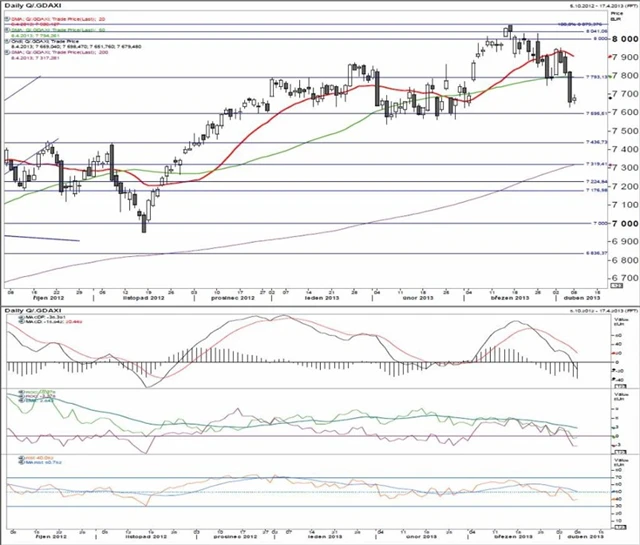 Technické indikátory jsou celkově jasně negativní. Očekáváme, že index během tohoto týdne pravděpodobně otestuje úroveň 7 600 bodů. Pokud vydrží, tak očekáváme pohyb do strany v (starém) pásmu 7 600 až 7 800 bodů. Pokud ne, hrozí pokles až k 7 450 bodům.