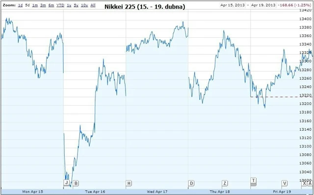 Index Nikkei si připsal 0,73 % a uzavřel obchodování na 13 316,48 bodu. Za celý týden však ztratil 1,25 %.