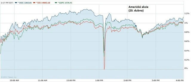 Americkým akciím se v úterý dařilo. Na pár minut je vyhodil ze sedla zfalšovaný tweet, který ohlásil útok na Bílý dům z účtu agentury AP, ale vzápětí ztráty vyrovnaly a zakončily v plusu.