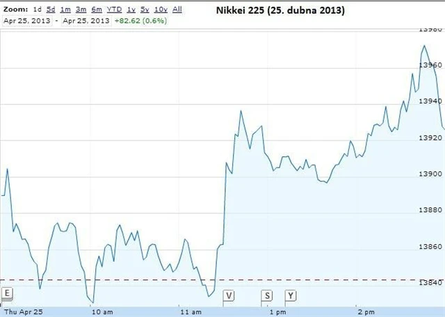 Japonské akcie opět podporoval slábnoucí jen, který investory utvrzuje v přesvědčení, že výsledky exportérských firem budou velmi dobré. Japonský index Nikkei 225 se dotkl ročního maxima.