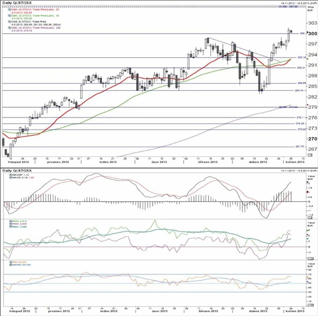 Technická analýza indexů S&P 500, DAX a Stoxx 600.