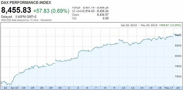 Index Dax od začátku roku posílil o 11,08 %. To by v současném prostředí nových historických maxim akciových trhů nebylo nic tak úchvatného. Za pozornost ovšem stojí, že za poslední měsíc přidal 13,35 %. A to už je zhodnocení jako hrom. V pondělí index německých akcií opět posunul svůj rekord.