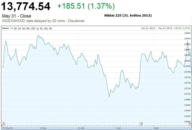 Indexu Nikkei zničil květnové výsledky propad z minulého čtvrtku, kdy Nikkei odepsal za jediný den 7 %, což bylo více, než když Japonsko zasáhla tsunami a havárie jaderné elektrárny Fukušima. Na tento propad navíc navázal další ztrátou 5 % včera. Za celý měsíc si tak Nikkei připsal 0,18% ztrátu.