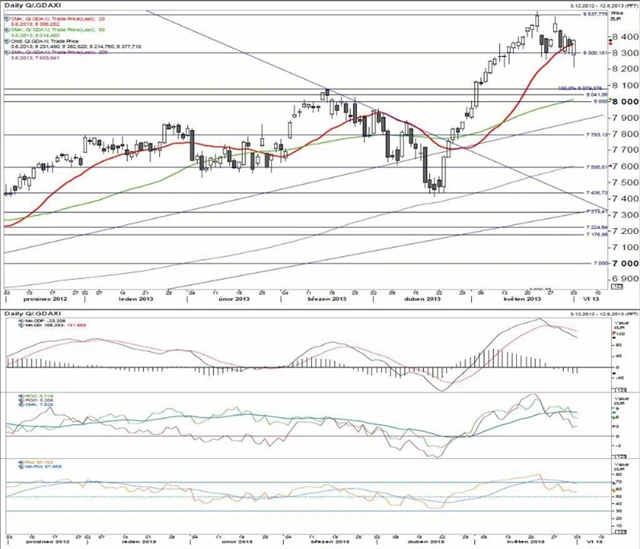 8 538 historický rekord z května 2013, 8 358 20denní (exponenciální) klouzavý průměr, 8 014 50denní (exponenciální) klouzavý průměr, 8 000 psychologická úroveň, 7 604 200denní (exponenciální) klouzavý průměr.