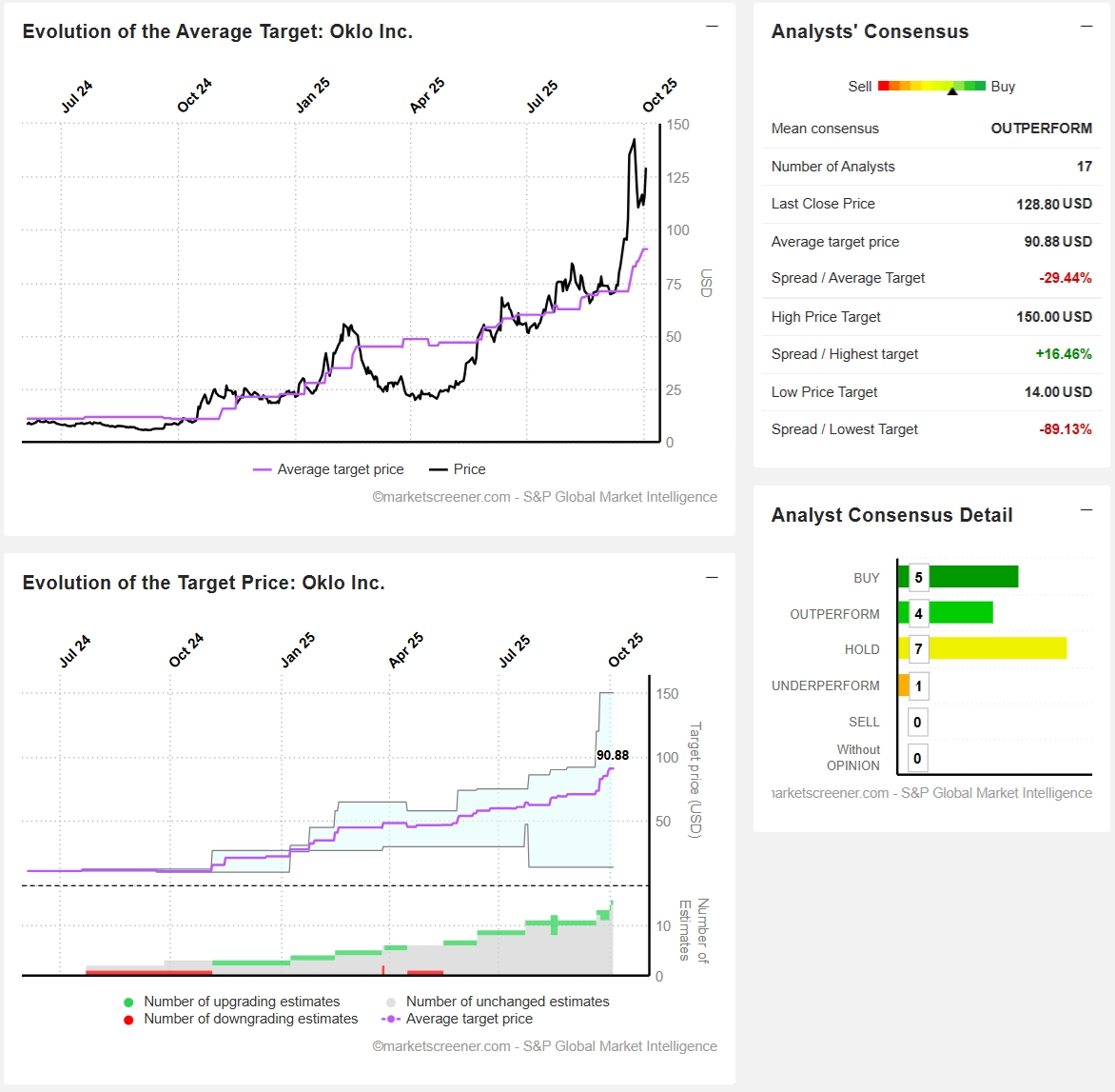 Analytici jsou v pohledu na akcie Okla stejně rozdělení jako investoři. Někteří vidí ve vývojáři (a podle jeho plánů i budoucím provozovateli) malých modulárních reaktorů jedinečnou příležitost, když argumentují tím, že svět stojí před bezprecedentním růstem poptávky po stabilní a čisté energii. Kvůli elektromobilitě, digitalizaci nebo rozmachu datových center pro umělou inteligenci.