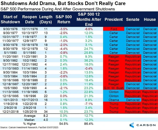 K omezení činnosti federálních úřadů došlo poté, co se republikány kontrolovanému Senátu v úterý nepodařilo prosadit návrh krátkodobého rozpočtu. Demokraté se snažili opatření využít k zakotvení prodloužení daňových úlev na zdravotní pojištění pro miliony Američanů. "Trh se navzdory všemu zdá být bez obav," uvedl Louis Navellier, zakladatel společnosti Navellier & Associates. "Momentum zůstává pozitivní."