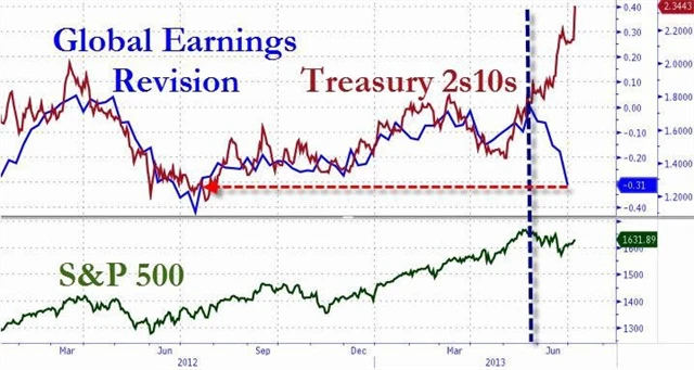 Zatímco se oči všech upínají k lepšímu ekonomickému růstu v USA a k rostoucímu akciovému trhu, index ERI, který měří odhady firemních zisků, se dramaticky odchýlil od výnosové křivky amerických dluhopisů.