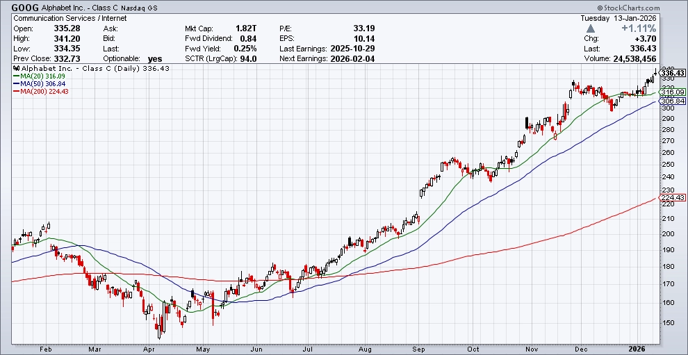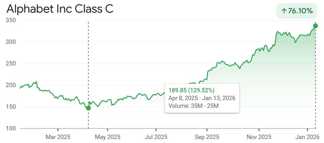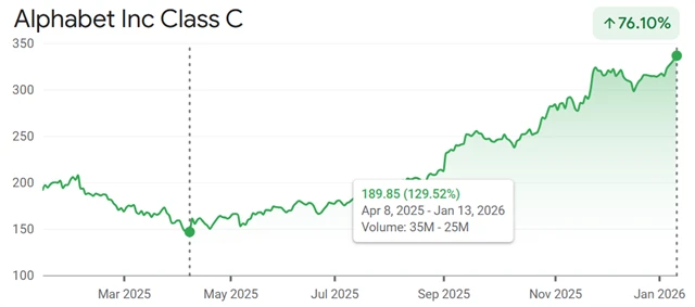 Akciím společnosti Alphabet se v posledních měsících extrémně daří, od minima indexu S&P 500 z loňského 8. dubna přidávají 130 %. Trh po určitém váhání ocenil silnou pozici firmy v oblasti umělé inteligence, což jen podtrhlo už tak výsadní postavení v cloudových službách. Velký jazykový model Gemini je stále vyhledávanější, ve svých zařízeních ho plánuje využívat mimo jiné Apple.