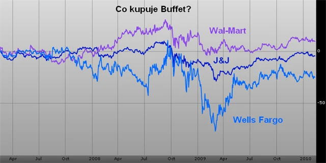 Také to vysvětluje, proč v roce 2009, kdy byla řada firem obchodována na letitých minimech, nakupoval akcie kolosů jako Johnson & Johnson,Wal-Mart a Wells Fargo.