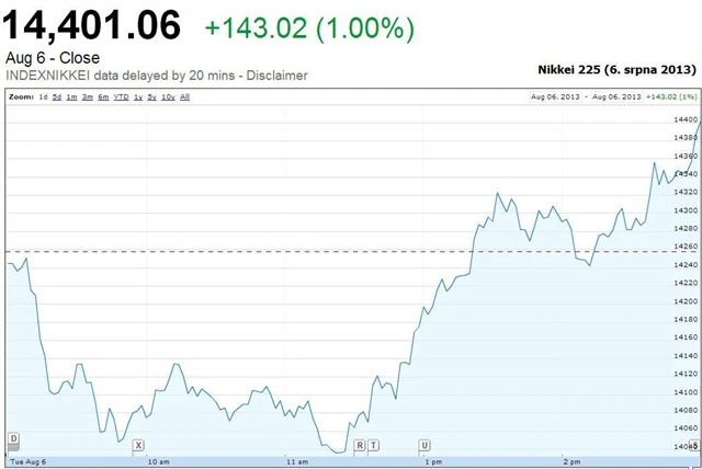 Nikkei posílil o 1 %, čínský Shanghai Composite téměř o 0,5 %, zatímco hongkongský Hang Seng odepisoval více než jedno procento, korejský Kospi 0,5% a australský S&P/ASX 200 0,11 %.