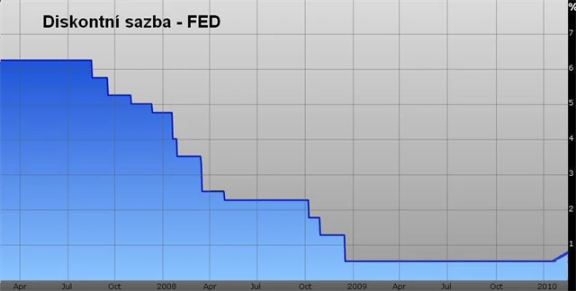 Fed zvýšil diskontní sazbu pro "záchranné" úvěry poprvé od prosince 2008, a to z 0,5 na 0,75 %. Důvodem jsou pro Fed zlepšené podmínky na finančním trhu, který se již obejde bez větší podpory centrální banky.
