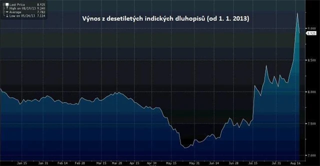 Ztrácí i indická burza, která za poslední dny klesla téměř o 6 %. "Na indické scéně se nestalo nic, co by mělo výprodeje spustit," říká Yetsenga. "Jde tu však o to, že deficity běžného účtu a státního rozpočtu byly v posledních dvou letech velice vysoké. V momentě, kdy začaly růst výnosy z dluhopisů USA, začaly z Indie odtékat peníze."