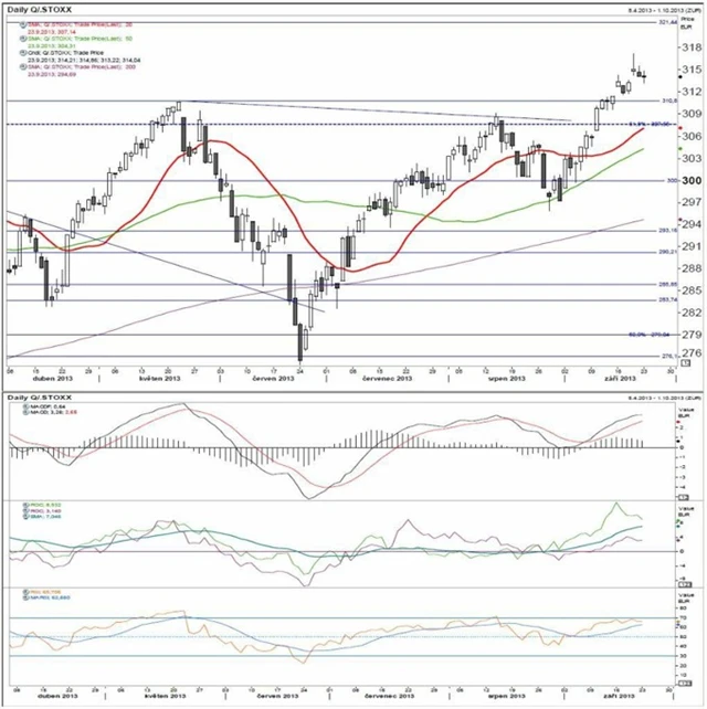 Technická analýza indexů S&P 500, DAX a Stoxx 600.