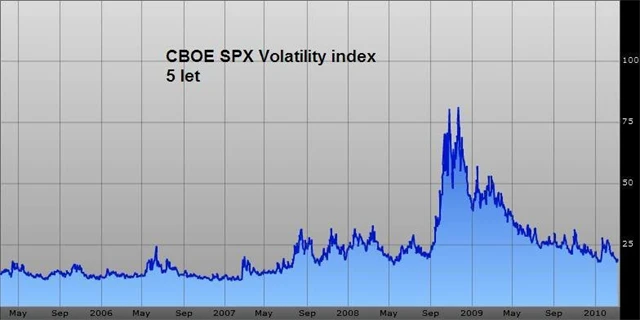 Podle indexu VIX (Chicago Board Options Exchange SPX Volatility Index) je S&P 500 jako na houpačce. Poslední klidné období z let 2004 až 2006 vystřídal vrchol z 20. listopadu 2008, kdy se kolísavost akcií vyšplhala na rekordních 80,9 bodu. Od té doby klesala až na hodnotu z loňského března, která se zastavila na 40 bodech.