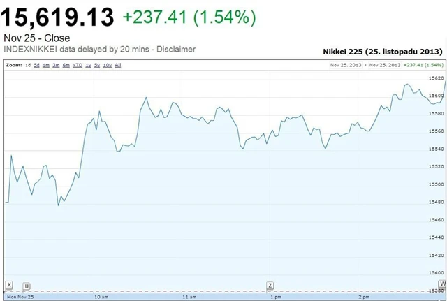 Asijské akcie kromě Číny v pondělí posilovaly. Japonským exportérům pomáhal slábnoucí jen a celkovou náladu na trzích zvedlo uzavření jednání kolem íránského jaderného programu.