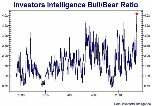 Podle zjištění Investor Intelligence převyšuje počet býků na trzích počet medvědů čtyřnásobně.
