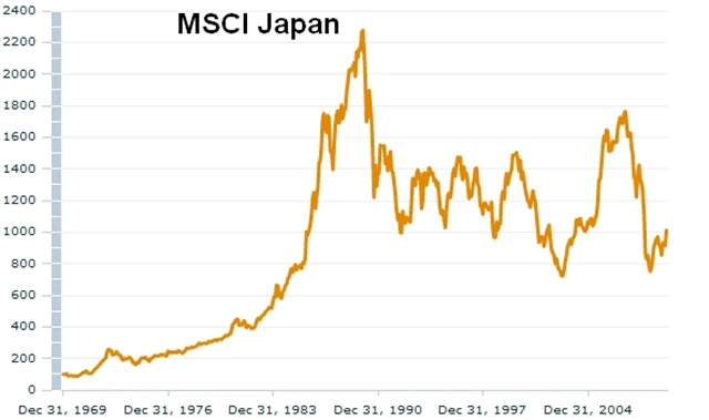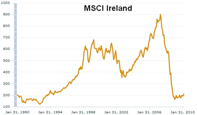 Nejhorší výsledek zaznamenal akciový trh v Irsku, který se v roce 2008 propadl do hlubin podobných Mariánskému příkopu a pohybuje se dnes okolo hodnot, jaké měl před dvaceti lety. Podobně odstrašující případ je Japonsko. Tamní akciový trh má dnes poloviční hodnotu ve srovnání s koncem osmdesátých let.