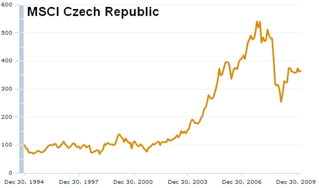 Také český Franta Investor moc dobře ví, že kdo koupil ČEZ, vydělal majlant. A nejen ČEZ. Index MSCI Czech Republic vzrostl za uplynulých deset let o 11 % p. a. Navíc koruna během té doby výrazně posílila, takže třeba americký investor by po přepočtu na dolary měl výnos 19 % p. a.