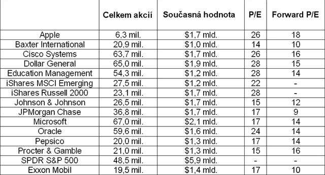 Průměrné forward P/E top 15 akcií držených Goldman Sachs je 14, tedy hodnota pod historickým průměrem.