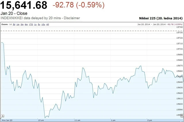 Čínská ekonomika ve čtvrtém kvartálu 2013 narostla o 7,7 %, čekal se mírnější růst o 7,6 %. Za celý rok 2013 čínský HDP vzrostl o 7,7 %. Mezikvartální růst ve čtvrtém čtvrtletí o 1,8 % mírně zaostal za odhadovanými 2 %. Ve třetím čtvrtletí ekonomika Číny posílila meziročně o 7,8 %. Zároveň byla zveřejněna zpráva o rekordních prodejích domů, které zaznamenaly v loňském roce nárůst o 27 % oproti 2012. Investory však příliš nepotěšila průmyslová výroba, která za prosinec mírně zaostala za očekáváním a vzrostla jen o 9,7 %, přestože se čekalo o pár desetin procentního bodu více.