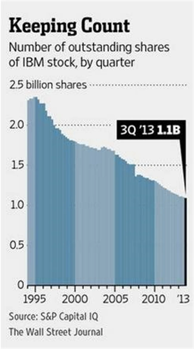Jednou z takových firem je podle deníku IBM. Návratnost z odkupů jejích akcií je 6,5 %, ale návratnost jejích aktiv v podnikání je podle Wall Street Journal 18,1 %. IBM přitom patří k firmám, které zpětné odkupy provádějí ve velkém. Od roku 1993 klesl počet jejích akcií na trhu z 2,3 miliardy na 1,1 miliardy.