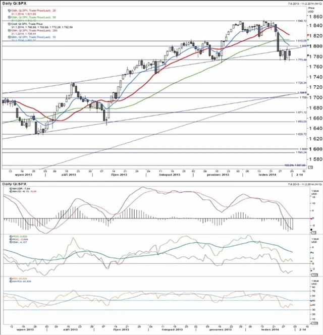 Technické indikátory jsou celkově slabé a nevylučují pokračování poklesu. Pro tento týden bude klíčová úroveň podpory na 1 773 bodech. Při její prolomení by došlo k prohloubení ztrát.